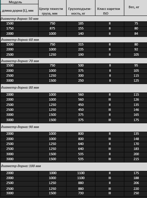 Ниже представлено оборудование, входящее в стандартную линейку моделей. По желанию возможно изготовление дорнов с иными параметрами (длина/ грузоподъемность).